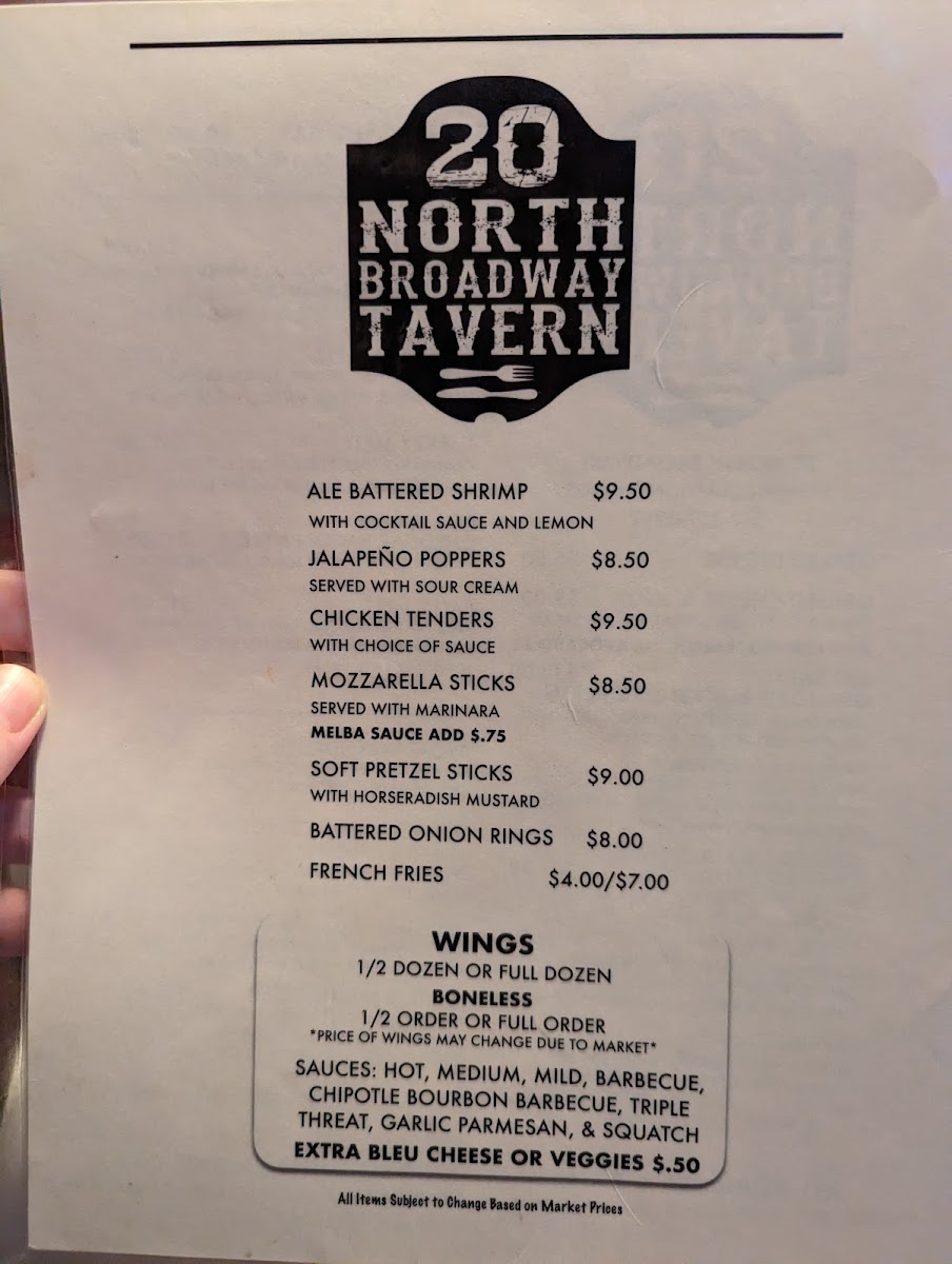 If you're looking for a dive bar that doesn’t compromise on the quality of food or service, 20 North Broadway Tavern checks all the boxes. With fast service and a comfortable atmosphere, it’s the ideal place to unwind with friends after a long day or to kick off a fun night out. Whether you’re a local or just passing through, make it a point to stop by for a round of wings and a lively atmosphere that you won’t soon forget.